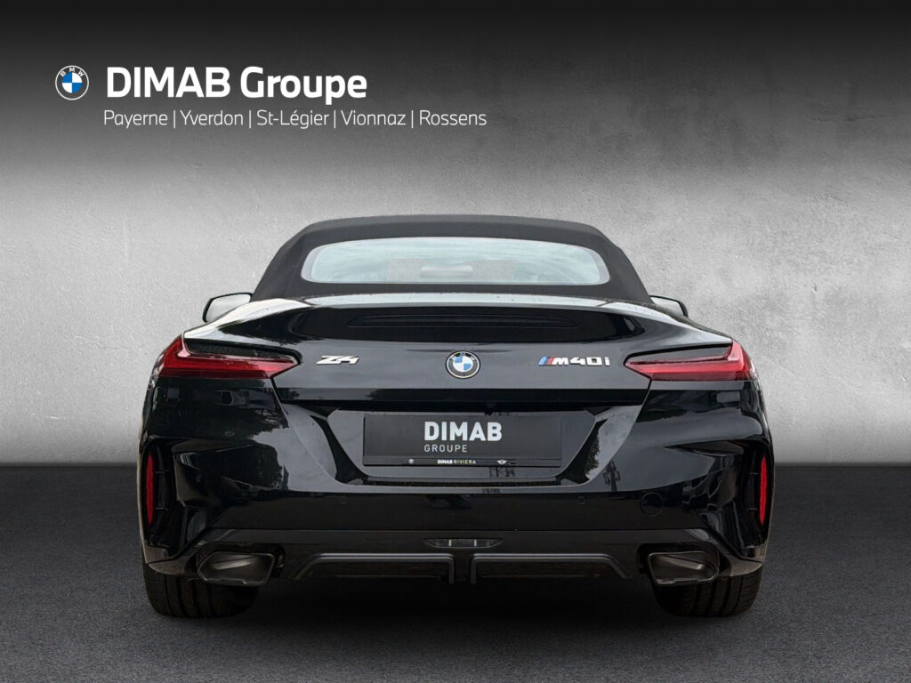 Véhicule illustré: Z4 M40i Steptronic, 250kW (340ch), Prix de vente: CHF 83’900.–, acompte: CHF 0.–, mensualité de leasing: CHF 923.–. Taux d’intérêt annuel effectif: 1.9 %, durée: 48 mois, kilométrage: 10’000 km/an. Offre de leasing valable pour toute signature de contrat entre le 23.03.2026 et le 31.12.2026. Assurance casco complète obligatoire en sus. L’octroi d’un leasing est interdit s’il entraîne le surendettement du consommateur. Une offre de BMW Services Financiers (Suisse) SA. Dans la limite des stocks disponibles.